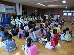 統一パトロールの対面式を行いました。国府地区の子どもを守る会の皆様にお越しいただき、対面のあいさつをしました。守る会代表の篠﨑様からは交通安全に気をつけること、駐在所の平野様からは不審者に気をつけることというお話がありました。