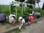 学級園の除草を行いました。ひょうたんやさつまいもが植えてある畑の雑草を取ったり、校庭の雑草を取ったりしました。根の深い草に苦戦しながらも一生懸命取り組んでいました。