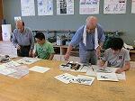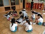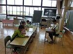書道展に出品予定の児童が、学習ボランティアの大塚先生に書道を教えていただきました。大塚先生の自信を持ってのびのび書きなさいというご指導のもと、力強く書き上げていました。図書室では子ども教室を開き、学習にも励んでいます。