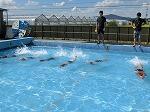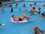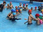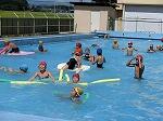 今日はプール納めのため、全学年でプールに入りました。最初に学年ごとにできるようになった泳ぎを披露しました。顔をつけられなかった1年生ももぐれるようになっていました。その後の自由時間では、シンクロをしたり浮島に乗ったり楽しく遊んでいました。今年もけがや事故なくプール活動をすることができて良かったです。