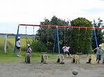 今日も子どもたちは元気いっぱいです。昼休みには外に出てうさぎと触れあったり、ブランコや鉄棒をしたり楽しく過ごしました。