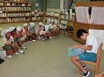 雨の日限定のおはなし会が開かれました。図書委員さんが本を選んで読み聞かせをしてくれます。どの子も集中して聞き入っていました。