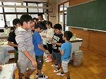 2年生が算数の勉強で水のかさを調べました。ペットボトルや牛乳パックに入る水の量を調べたり、バケツに何リットル入るのか調べたりしました。とても楽しく取り組んでいました。