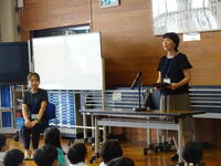 明日がオープンスクール、30日は振替休日のため、今日の昼休みに離任式を行いました。