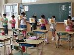 毎週金曜日はALTのエナ先生と英語活動の日です。3年生はNumber、5年生はTimeについて体を動かしながら楽しく活動していました。