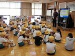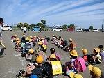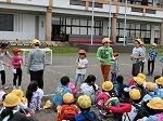 交通安全教室を行いました。天気が心配されたため、自転車の乗り方ではなく安全な道路の歩き方を確認しました。横断歩道では止まる・見る・手をあげる、飛び出さないなど確認しながら学校の周りを歩きました。