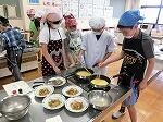 6年生が調理実習で野菜炒めと炒り卵を作りました。