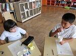 クラブ活動ではボランティアの先生をお招きして様々な活動をしました。昔遊びクラブでは折り紙であじさいやコースターを作りました。語学クラブでは書道で好きな言葉を書きました。子どもたちはとても楽しそうでした。