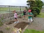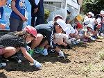 緑を守り隊の活動で学校の西側のグリーンベルトに綿の種をまきました。子どもたちは芽がいつでるのかと楽しみにしながらまいていました。最後に6年生が水やりをして終わりました。