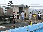 約1時間半の作業で、プールの中の汚れを洗い流しました。また、プールサイドや更衣室もきれいにしました。きれいになったプールでの水泳授業が楽しみです。