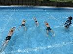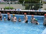 今日は1・2年生が初めて水泳を行いました。6年生がサポートで一緒に入りました。