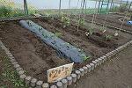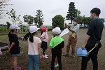 2年生がさつまいもの苗を植えました。秋にたくさん収穫するのが楽しみです。