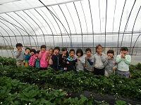 1・2年生14名は、生活科の学習で近くのいちごハウスへ行って、いちごの作り方などいろいろな話を聞いて来ました。そして、少しだけいちごを食べさせていただきました。