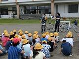 今日は田村駐在所の平野さんを講師にお迎えして、交通安全教室を行いました。始めに自転車の安全な乗り方についてのDVDを見て、その後、自転車の安全な乗り方と横断歩道の正しい渡り方のお話を聞きました。