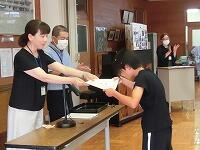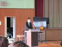 始業式の前に、転校生の自己紹介がありました。よろしくね! 最後に、表彰がありました。おめでとう!