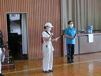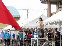 ↑ 中学生・高校生・大学生・地域の方々約30名が支援してくれています。PTA会長挨拶、市長メッセージ代読、紅白団長の選手宣誓