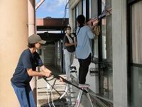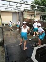 <窓の掃除> お母さん方を中心に、高いところまできれいにしてくれました!