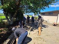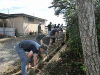 <校庭南側溝の掃除> お父さん・コミスクの方10名ほどで土・泥をきれいに取り出してくれました!