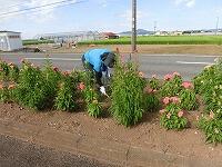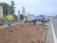 <グリーンベルトの除草> 職員やコミスクのみなさんで、除草作業。すっかりきれいになりました!