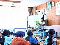 この日、1校時に始業式がありました。校長先生のお話があり、気持ちのよいあいさつなど2学期に頑張ってほしいことについてのお話がありました。続いて、2年生、5年生が代表で、2学期の目標を発表しました。やる気に満ちた発表でした! 元気に集まった皆さんの顔を見て、とても嬉しくなりました。