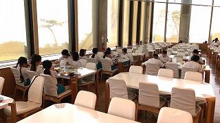 12:30からの 食事の風景が届きました。窓際の一番景色のいい席で、なんだか貸し切りのようですね。