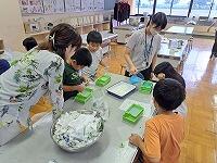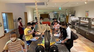 この日は、9月に行く臨海自然教室の、ブッフェスタイルの食事の仕方を学びました。自分の食べられる分だけ、バランスよく取ることが大切ですね。日頃の食生活にも活かせそうですね。
