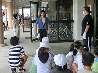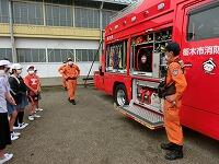 消防署の方々に、火災発生時の煙を避けた避難の仕方、初期消火の仕方、消防車の装備、質問コーナーなど約1時間をとっていただいて、たくさんのことを学ぶことができました。消防署の皆様、大変お世話になりました。