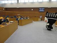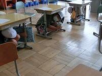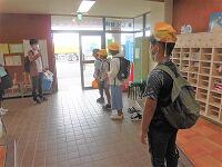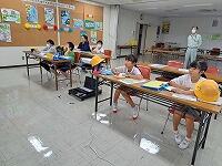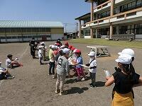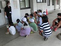 この日、まず避難訓練が行われました。地震発生の後、理科室から出火の想定で避難指示、児童、職員ともに避難訓練です。