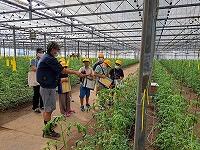 6月20日に見学に行ったトマト農家さんに、この日再び見学に行きました。赤いトマトはまだなっていないけれど、トマト栽培のなぞがいくつも見つかりました!小さな苗からていねいに、ていねいに、育てているんですね!たくさん質問して帰ってきました。