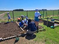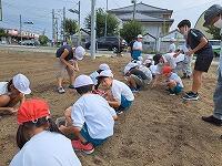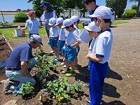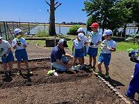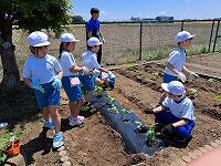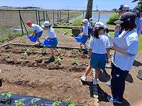 あいさつして→野菜のお話や→植え方の説明を聞いて→自分で苗植え