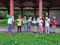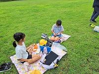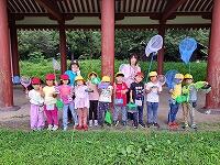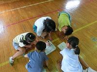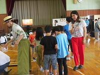 この日、オープンタイムはEXPOタイムでした。今年度2回目のテーマは「アメリカ」です。7月4日の独立記念日にアメリカで行われているゲームを全校でやってみました。アメリカについてのお話を聞いている間に、アメリカ国旗(小旗)を校庭に先生が隠して、班ごとに何個見つけられるかという遊びでした。アメリカ国旗の特徴を学ぶことができました。