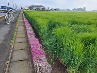 4/20は歓迎遠足。下野国庁跡へ向かう麦畑には芝桜が満開です。歩いている子どもたちをきっと励ましてくれることでしょう。