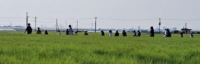 歩いて20分程度。また見学に来ました。苗は、まだみんなの背より少し低いね。