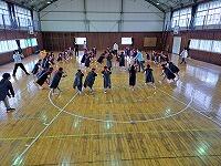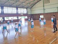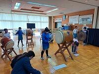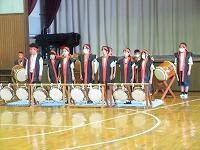 ↑ 「国庁太鼓」の演奏。この日は降雨の心配もあって体育館で運動会の最後に実施。体育館に太鼓の音が響き渡りました!演奏後に大喝采!