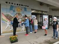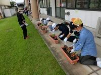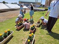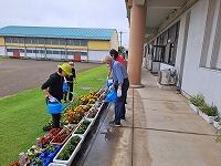 プランターの花々は、前日に5年生女子を中心にきれいに植えてくれました。(1年生もお手伝い)