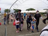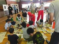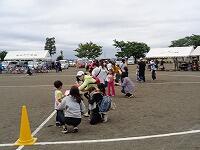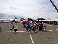 ↑ 親子競技の様子。1~3年生はカードをめくって、4~6年生は大玉を転がして、協力してがんばりました!
