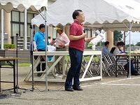 ↑ 1年間練習してきた「よさこいソーラン」です。最高のできでした。見えにくいですが、中高生のOBOGも踊っています!その後の休憩時間を使って、「コミスク推進」活動のご紹介がありました。