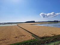 さあ出発。見渡す限りの麦畑の中を・・・ 泳ぐように進んでいきます!自然いっぱいです。元気に行ってらっしゃい。芝桜も応援しています!