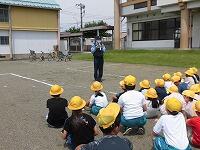 毎年、5月のゴールデンウィーク明けごろに、「交通少年団総会」を実施しています。この日も、栃木地区交通安全協会国府支部長様や田村駐在所駐在員のおまわりさんをお迎えして、交通安全についてのお話を聞きました。また、6年生の団長があいさつして全校児童に交通安全を呼びかけたり、全員で「交通安全ちかいのことば」を唱和したりしました。一人一人が自分の身を守る大切さを理解して、1年間交通安全に気をつけて生活してほしいと思います。