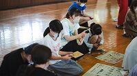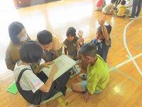 この日、昼休みは縦割り班ごとに全校で遊ぶ「国府南っ子タイム」でした。前回の「話合い」の時間に決めた遊びを、班ごとにやりました。どの班も、仲良く遊べたようですね。