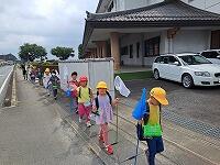 昨日の、2・3年生が5時間授業を終了して下校するときの様子です。まっすぐ上手に並べていますね。先生のお話を聞いて、進行の児童に合わせて「さようなら!」 挨拶も元気にできました。