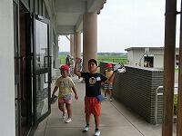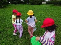 5月は、なかよし班(4つの異年齢グループ)ごとに分かれて遊びます。どうやら「風船バレー」が人気遊びのようでした。
