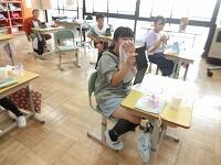 <おいしい給食>久しぶりの給食です。みんなで食べるとやっぱりおいしいね!