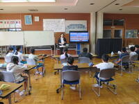 映像を見て、歯やむし歯、歯みがきの仕方について学習し、実際にブラッシングを練習しました。