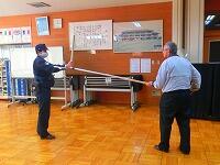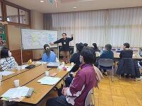 2月2日に予定している避難訓練に向け、この日、教職員研修で、不審者が侵入してきたことを想定した遺作について学びました。講師には、日頃巡回していただいているスクールサポーターと、田村駐在所の警官の方をお迎えしました。子どもたちを守るため、真剣に取り組んでいました。