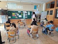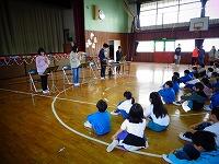 この日、4時間目に終業式が行われました。校長先生から「挑」の漢字をテーマに、2学期の挑戦やがんばった様子を振り返り、今学期の児童のみんなががんばった成果についてお話がありました。