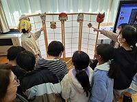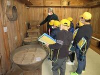 最後に、大平町にある「おおひら郷土資料館(戸長屋敷)」に行って、農家の家のつくりを見たり昔の道具を体験したりしました。