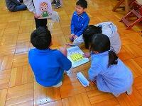 この日、バレンタインデーの始まりをもとに、イギリスの国の紹介がありました。ハートレースゲームをみんなで楽しんでから、今年一年の活動を振り返りました。フィリピン、アメリカ、ドイツ、日本などなど・・・いろいろな国の文化や遊びを学び、楽しむことができましたね!