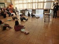 きょう、避難訓練があり、スクールサポーターの方、駐在所の警察官にご指導いただき、不審者対策の訓練を行いました。みんな真剣に取り組んで、約束を守って避難することができました。