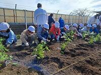 国府地区まちづくり実行委員会の方々に毎年ご協力をいただき、学校西側にあるグリーンベルトに、全校児童でルピナスの苗植えを行いました。短い時間でしたが、地域の方と、またPTA・コミスクの皆さんにも協力していただき、子供たちと一緒にたくさんの苗を植えました。5月ごろに花が咲きます。皆さんにもいつも楽しんでいただいています!花が咲くのが楽しみですね!
